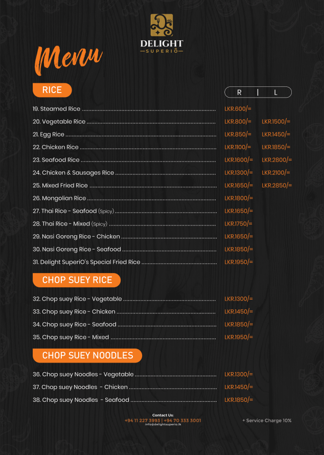 At Delight SuperiÔ, we bring you the tastes you love and the choices you crave. From rich Sri Lankan spices to bold Chinese flavors and international favorites, every dish is crafted to delight your palate. Whether you seek comfort food or exciting new flavors, our diverse menu has something for every craving. Enjoy fresh, high-quality ingredients, expertly prepared, in a warm and inviting setting—where every bite is pure satisfaction.